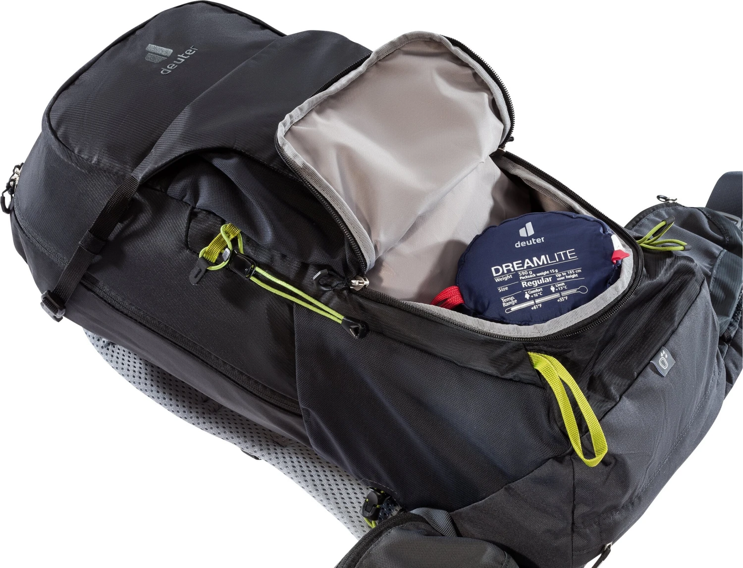 la construction avec des coussinets en mousse fonctionnelle ventilée garantit un ajustement serré pour les charges moyennes en terrain alpin. Il maintient toujours la charge près du dos et donc près du centre de gravité du corps. Le poids est transféré efficacement et le contrôle du sac à dos est garanti.