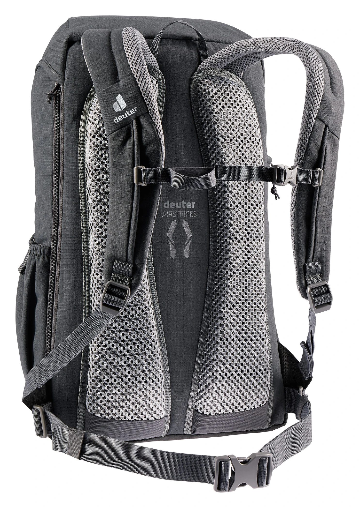 Deux coussins Airstripes avec des canaux d’aération assurent une surface d’appui minimale et la meilleure circulation de l’air. L’espace libre ainsi créé entre le dos et le sac à dos contribue efficacement à réduire la transpiration.